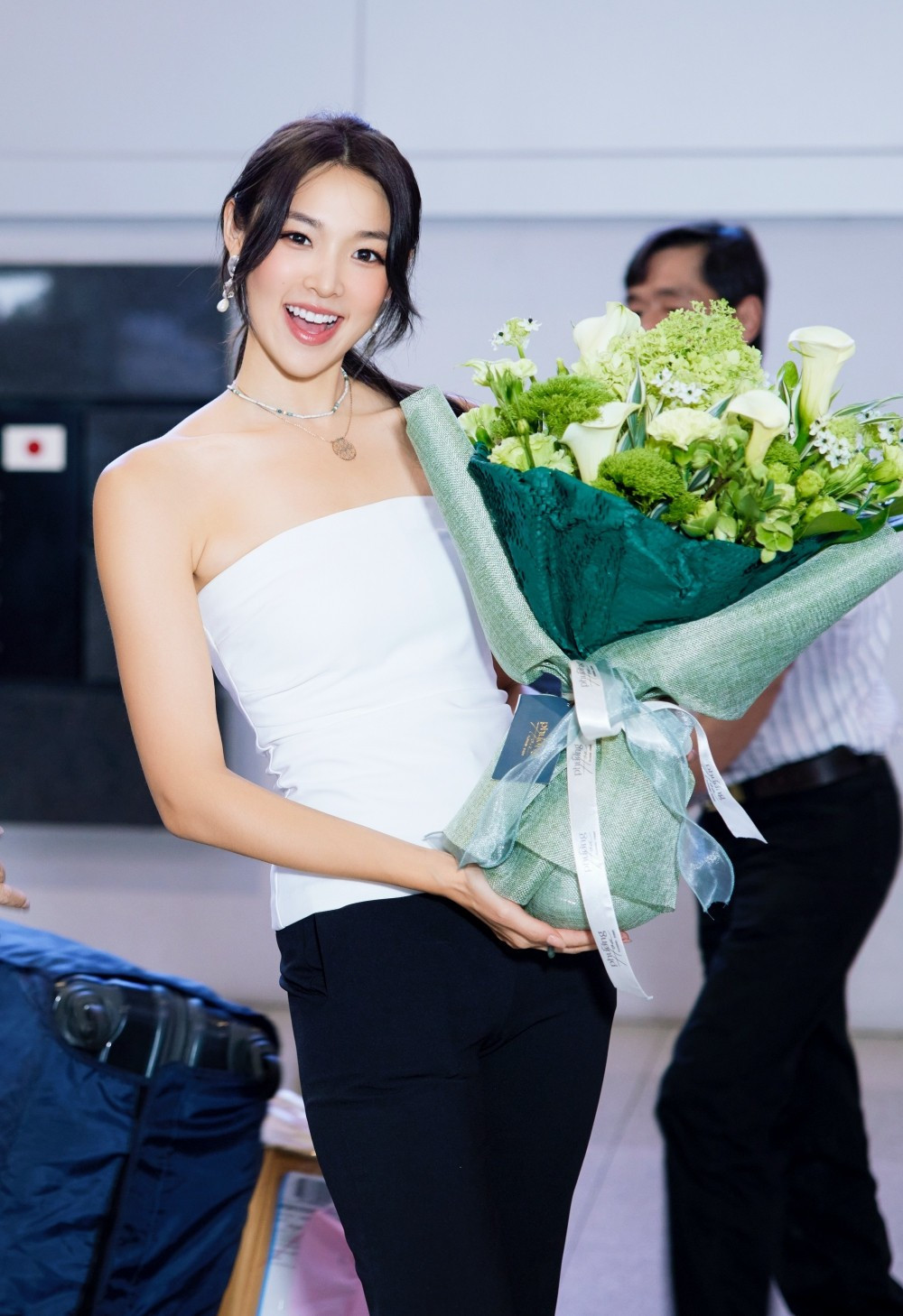 Mina Sue Choi mặc áo dài khi sang Việt Nam tham dự Hoa hậu Trái Đất 2023 tổ chức ở TPHCM. Cô gây ấn tượng với vẻ đẹp duyên dáng, phong cách nói chuyện lôi cuốn, thông minh.